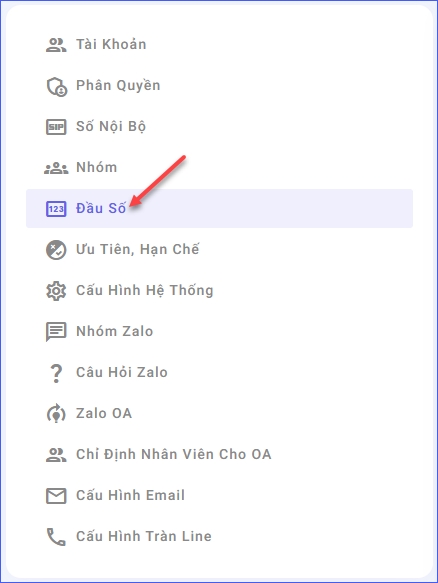Sau khi truy cập vào menu quản trị sẽ được chuyển trực tiếp đến đường dẫn của màn hình quản lý danh sách tài khoản -> Chọn Đầu số ( Hình dưới ).