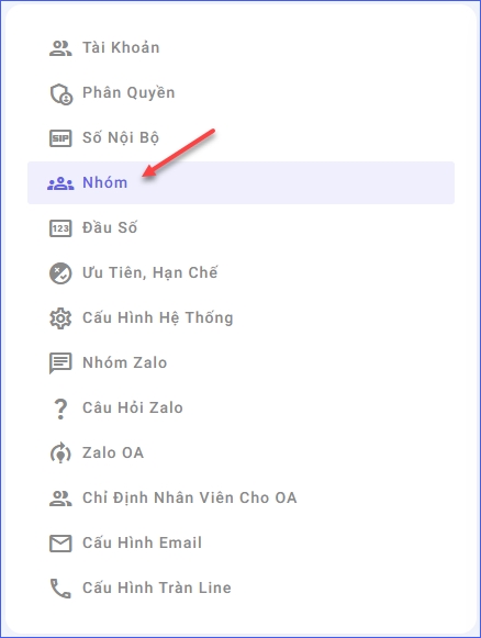 Sau khi truy cập vào menu quản trị -> Chọn Nhóm làm việc ( Hình dưới ).