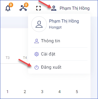 Chọn biểu tượng icon và tên tại góc trên bên phải của trình duyệt hiển thị ra như ảnh dưới và chọn vào đăng xuất