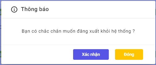 Sau khi chọn đăng xuất sẽ xuất hiện hộp thoại. Nhấn XÁC NHẬN để đăng xuất hoặc ĐÓNG để hủy bỏ thao tác đăng xuất